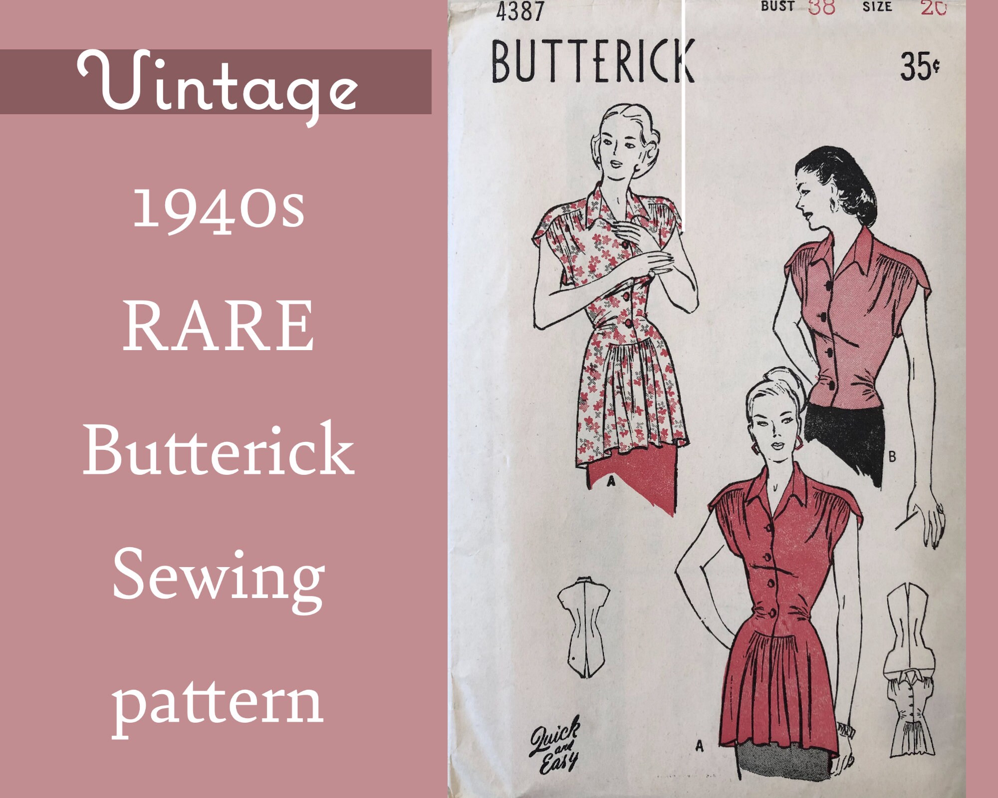 1940s Vintage Dress Pattern Fourties Sewing Pattern Etsy